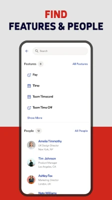 Lietotne sniedz arī unikālas iespējas vadītājiem, ļaujot apstiprināt darba laika uzskaites lapas un atvaļinājuma pieprasījumus ar dažiem pieskārieniem. Efektīvi pārraugiet savas komandas kalendārus un iegūstiet vērtīgu ieskatu, izmantojot vadītāju informācijas paneļus, kas palīdz pieņemt pārdomātus lēmumus. Gan darbinieki, gan vadītāji novērtēs iespēju ērti sazināties ar kolēģiem un piekļūt ekskluzīviem piedāvājumiem no ADP un trešo pušu pakalpojumiem, padarot šo lietotni par neatņemamu rīku jūsu ikdienas darbam.