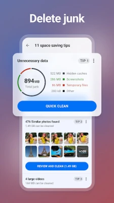 Ar CCleaner for Android jūsu ierīces tīrīšana kļūst par vienkāršu uzdevumu. Dziļi analizējiet un droši izdzēsiet kešatmiņas datus, pagaidu failus, pārlūkprogrammas vēsturi, starpliktuves saturu un atlikušos datus no atinstalētām lietotnēm. Atgūstiet dārgo vietu, bez piepūles atinstalējot vairākas nevēlamas lietojumprogrammas vienlaicīgi. Turklāt, sakārtojiet savu foto galeriju, identificējot un dzēšot dublikātus, zemas kvalitātes (pārgaismotus, tumšus vai izplūdušus) attēlus, kā arī samazinot failu izmērus, vienlaikus piedāvājot iespēju pārvietot oriģinālus uz mākoņkrātuvi, lai ietaupītu vēl vairāk vietas.