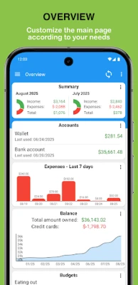 Fast Budget piedāvā daudzpusīgu rīku komplektu, kas padara naudas pārvaldību vienkāršu un efektīvu. Sekojiet līdzi visiem saviem bankas kontiem un kredītkartēm, lai vienmēr būtu lietas kursā par jūsu aktīviem. Ievadiet savus ienākumus un izdevumus zibenīgi, izmantojot ērtās veidnes un logrīkus, kā arī plānojiet regulārus maksājumus ar savlaicīgiem atgādinājumiem. Izveidojiet mērķtiecīgus budžetus katrai kategorijai un izvēlētajam periodam, lai precīzi zinātu, cik daudz naudas jums vēl ir pieejams. Ar Fast Budget vairs nekādu pārsteigumu – tikai pārdomāta un apzināta tēriņu kontrole.