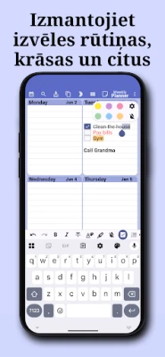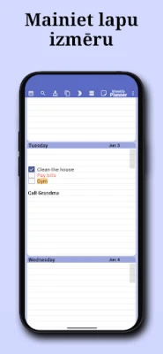 Ar Nedēļas plānotāju jūs iegūstat maksimālu elastību. Plānojiet savu gadu, mēnesi vai nedēļu ar bezprecedenta vieglumu. Pievienojiet atkārtotus notikumus – ikdienas sanāksmes, iknedēļas treniņus vai ikgadējas jubilejas – un ļaujiet lietotnei parūpēties par pārējo. Personalizējiet savu digitālo dienasgrāmatu, izvēloties sev tīkamāko krāsu shēmu un fontu, lai atspoguļotu jūsu personību. Viss tiek automātiski saglabāts, un jūsu dati ir droši ar izvēles paroles bloķēšanas aizsardzību, kā arī nodrošināta sinhronizācija starp jūsu ierīcēm, lai jūs nekad nepalaistu garām svarīgu detaļu.