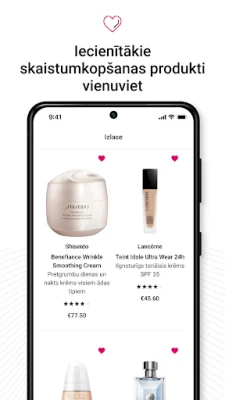 Padariet savu skaistumkopšanas rutīnu patiesi personisku un pārliecinošu. Izveidojiet savu ideālo vēlmju sarakstu, kurā varat saglabāt visus savus iecienītākos kosmētikas un parfimērijas produktus, ērti plānojot nākotnes pirkumus vai gaidot īpašus piedāvājumus. Aizmirstiet par minējumiem – pieņemiet pārdomātus lēmumus, izmantojot tūkstošiem autentisku klientu atsauksmju. Un, ja vēlaties izmēģināt ko jaunu, aktivizējiet virtuālo izmēģināšanas rīku. Pateicoties pašbildes režīmam, jūs acumirklī varat redzēt, kā lūpu krāsas, tonālā krēma vai acu ēnu toņi izskatās uz jums, padarot izvēli gan jautru, gan precīzu.