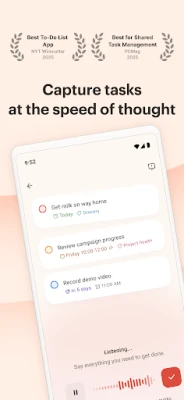 Jūsu prāts ir radīts ideju ģenerēšanai, nevis to paturēšanai. Todoist ļauj tvert domas un uzdevumus ar nepārspējamu vieglumu. Izmantojiet dabisku valodu vai balss ievadi, lai aprakstītu savus pienākumus, un vērojiet, kā Todoist tos acumirklī strukturē pareizajos projektos ar atbilstošiem termiņiem. Ar zibens ātruma Quick Add funkciju pievienojiet jaunus uzdevumus ar visiem nepieciešamajiem parametriem – datumiem, atzīmēm un atgādinājumiem. Izveidojiet savu personalizēto produktivitātes sistēmu, izmantojot elastīgus skatus: pārskatu sarakstā, vizuālā darbplūsmā ar dēli vai laika plānojumu kalendārā. Iebūvētā paradumu uzraudzība un spēcīga projektu pārvaldība ar apakšuzdevumiem, sadaļām un prioritātēm nodrošina, ka nekad nepazaudējat fokusu uz svarīgāko.